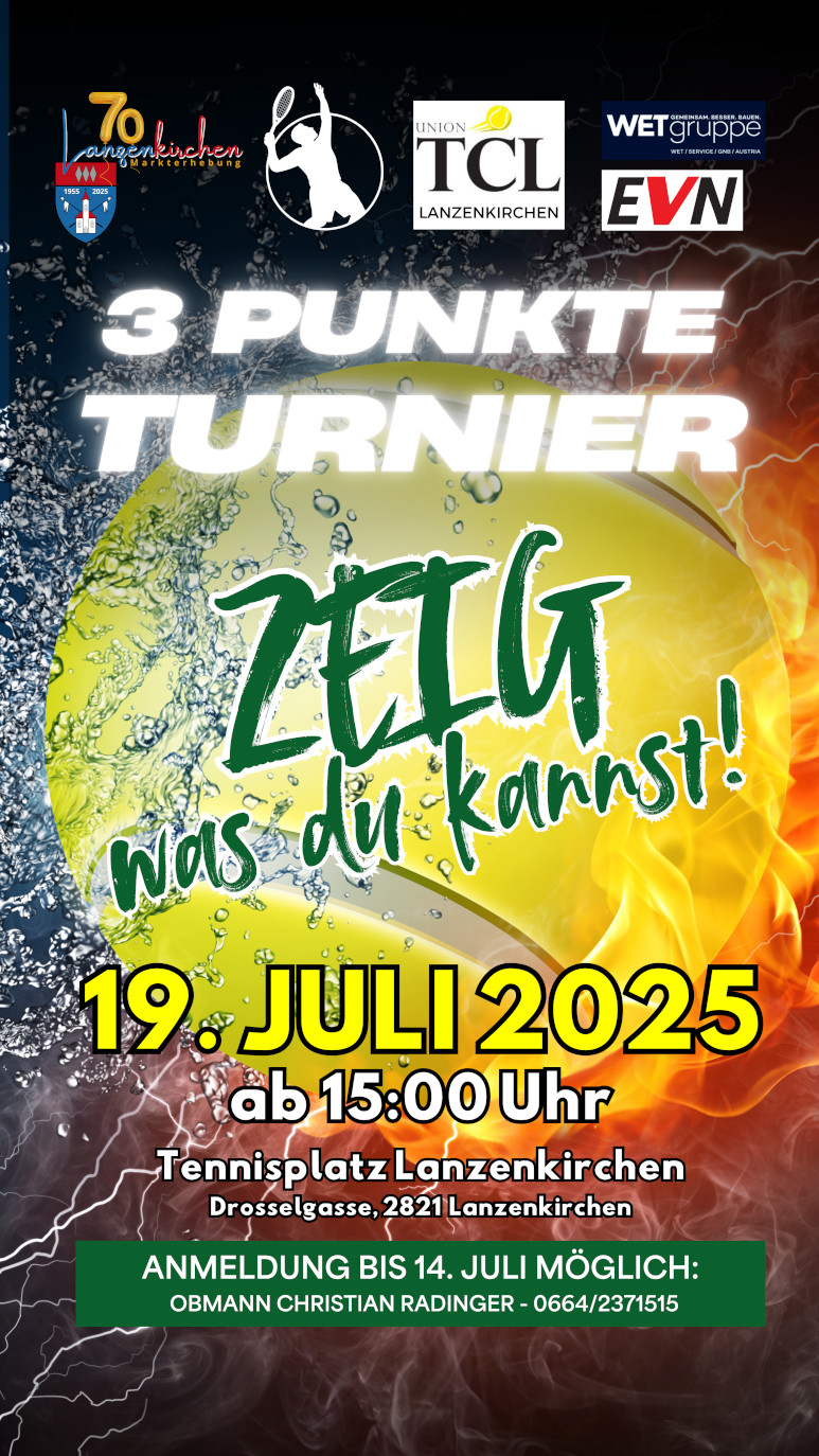 ➡️ Vor dem Fest um 15:00 Uhr wird noch ein 3 Punkte Turnier veranstaltet. 🎾